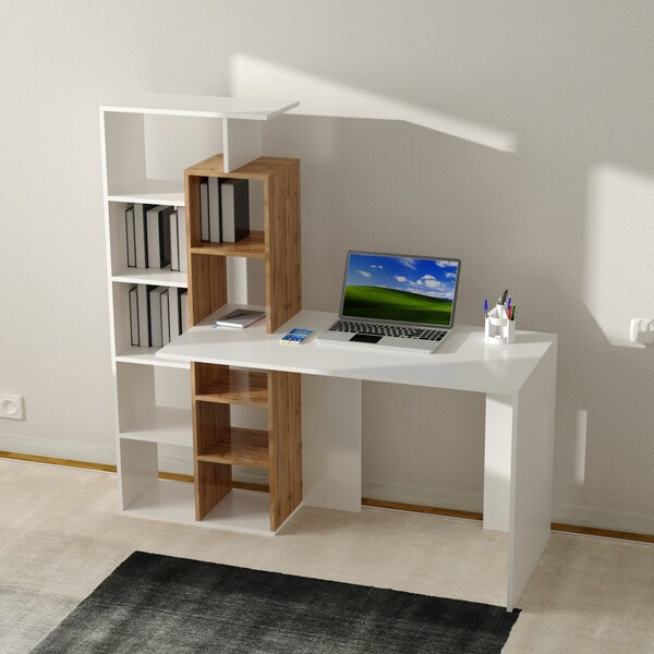 Письменный стол Poly белый/анкор темный. Оригинальный легкий дизайн стола сделают этот предмет мебели одним из любимых в интерьере комнаты. Данный стол имеет функциональные боковые полки и большую столешницу для плодотворной работы.