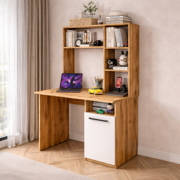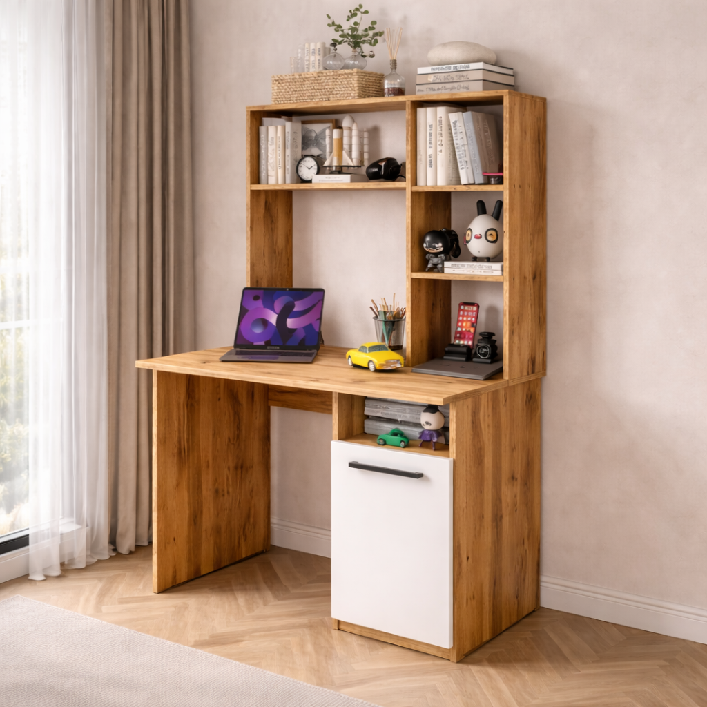 Письменный стол Smart — компактный и удобный вариант для дома или детской. Он не занимает много места, при этом остаётся практичным и вместительным. Светлый современный дизайн легко впишется в интерьер, а встроенные полки делают стол особенно функциональным — всё необходимое всегда под рукой. Широкая столешница подходит для работы или учёбы, а тумба с дверцей — для хранения вещей. Отличное решение для комфортного и аккуратного рабочего места даже в небольшом пространстве.