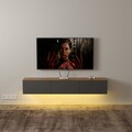 Тумба под ТВ Neo — это стильное и функциональное решение для современного интерьера. Её лаконичный дизайн с эффектным сочетанием тёплого дерева и матовых тёмно-серых фасадов придаёт комнате элегантность и минимализм.