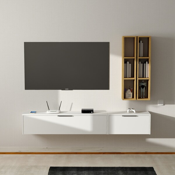 Минималистичная подвесная тумба с комбинированным дизайном: белые фасады и вертикальные открытые полки под дерево. Идеальна для TV-зоны — есть место для приставок, роутера, аксессуаров и декора. Легкая, стильная и практичная — отлично впишется в любой современный интерьер.