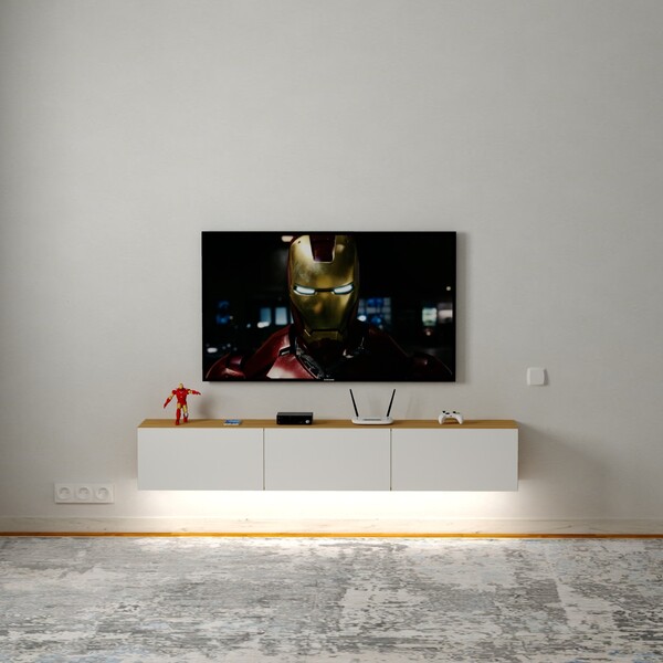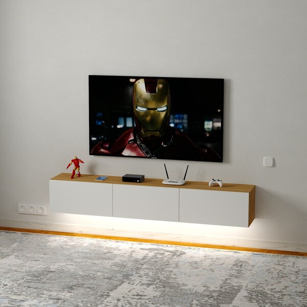 Тумба под ТВ Neo — это стильное и функциональное решение для современного интерьера. Модель выполнена в минималистичном дизайне: сочетание матового белого фасада и тёплой текстуры дерева придаёт ей скандинавский шарм. Подвесная конструкция создаёт эффект лёгкости и визуально расширяет пространство.
