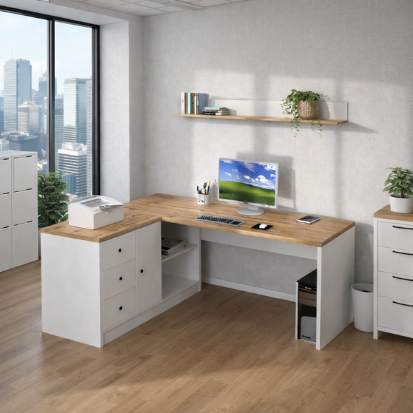 Угловой стол «Кинг» — это практичное и современное решение для организации комфортного рабочего пространства дома или в офисе. Благодаря продуманной конструкции он эффективно использует угол комнаты, экономя место и обеспечивая удобство в работе.
